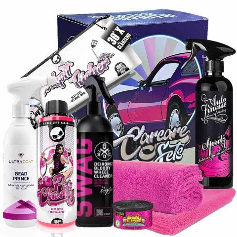 Základní "růžová" sada autokosmetiky. V boxu najdete čistič na kola, pH neutrální autošampon, rychlý sealant a interiérový detailer. Dále jsou zde čistící ubrosuky do interiéru, vůně v plechovce a dvě mikrovláknové utěrky. Vše dostanete v naší dárkové krabičce.