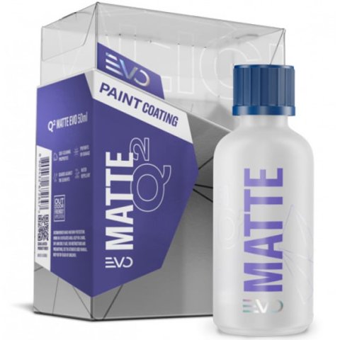 Hlavní výhodou Q² Matte EVO je jeho neutrální povrch na matných nebo saténových barvách. Jeho složení na bázi oxidu křemičitého (SiO2) bylo speciálně navrženo tak, aby poskytovalo vysokou UV a chemickou ochranu v kombinaci se skvělými samočistícími vlastnostmi na velmi náročné struktuře matného laku. Sada Q² Matte EVO také obsahuje náš speciální hydrofobní sprejový těsnicí/keramický detailer vyvinutý pro matné barvy - Q²M Cure Matte spolu se všemi požadovanými aplikátory a uživatelskou příručkou pro konkrétní produkt.