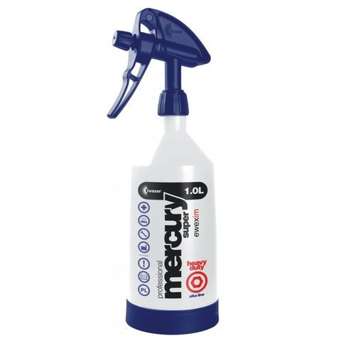 Mixovací láhve jsou opatřeny pumpičkou se systémem "Double Action". V praxi to tedy znamená, že pumpička čerpe a rozstříkává přípravek nejen při zmáčknutí, ale i při uvolnění držadla. Navíc je na hrdle nastavitelný stupeň atomizace, nebo na kontinuální proud. Další výhodou systému ostřikovačů Kwazar Mercury Super Pro+ je odolná nádrž s měřítkem v ml. Podobně jako u jiných výrobků z řady Pro v postřikovačích Mercury Pro byly použity těsnění z materiálu Viton, což zaručuje zvýšenou odolnost vůči kyselým a alkalickým látkám. Nádrž postřikovače je vybavena lištou hladiny kapaliny.