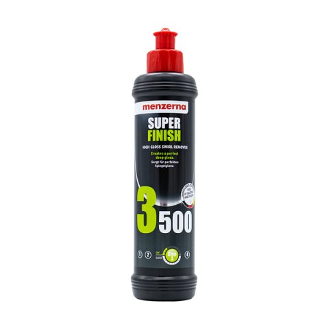 Menzerna Super Finish 3500 je finišovací leštící pasta, kterou ukončujeme leštění. Má jen minimální úběr laku, dokonale vyleští povrch do zrcadlového lesku a připraví pro nanášení vosku. Odstraní zamlžení po hrubších pastách, mikroškrábance a hologramy.