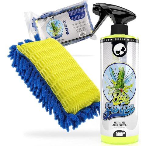Nuke Guys Bug Swipe je alkalický čisticí prostředek pro snadné odstranění hmyzu, pylu a dalších organických zbytků. Důmyslné složení dosahuje změkčení zbytků chitinu pomocí speciálních účinných látek, takže je lze důkladně a šetrně odstranit. Tento výrobek doporučujeme také k čištění motocyklu.