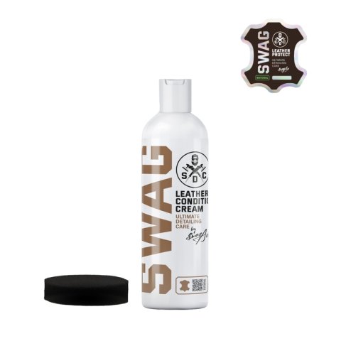 Swag Leather Conditioner Cream (SLCC) je profesionální přípravek určený pro kompletní péči o kožené čalounění, který byl vytvořen pro všechna detailingová studia a automobilové nadšence, kteří hledají přípravek pro údržbu kožených částí vozidla, poskytující saténový povrch. Receptura SLCC je založena na vybraných složkách, které mají impregnační a regenerační vlastnosti. Aplikace přípravku obnovuje pružnost kůže, její povrch se stává měkkým a sametovým na dotek.
