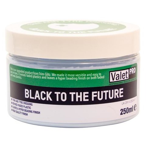 ValetPro Black To The Future Trim and Tyre Dressing 250 ml je speciální krém, který vrátí starým, vybledlým plastům a pneumatikám skvělý vzhled.
