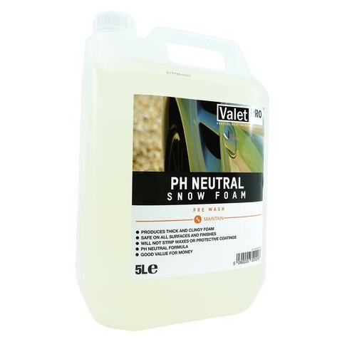 ValetPro pH Neutral Snow Foam 5L je pH neutrální aktivní pěna pro předmytí automobilu.